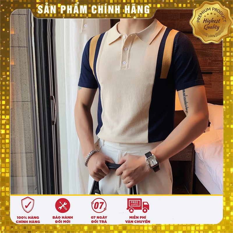 Áo phông nam cổ bẻ, Áo thun nam ngắn tay, polo nam, Phối kẻ tinh tế CMEN free ship