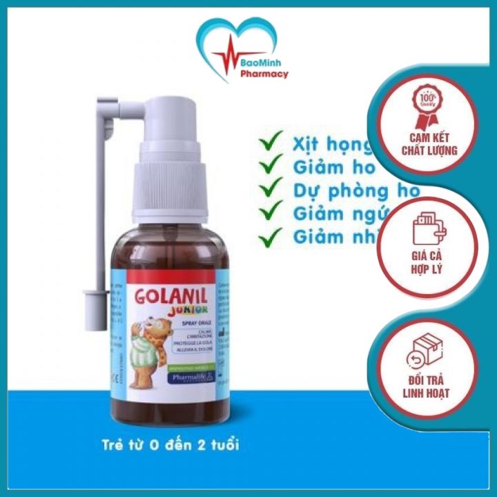 Miễn phí đổi trả nếu bán hàng kém chất lượng. Hiện tại Xịt Họng Golanil Spray Orale 30ml - Xịt Sát Trùng Họng Giảm Ho, Đau, Ngứa Rát Họng Cho Bé Chiết Xuất Keo Ong đang được giảm giá chỉ còn 358,050đ. Số lượng có hạn hãy nhanh tay đặt khi còn hàng bạn nhé