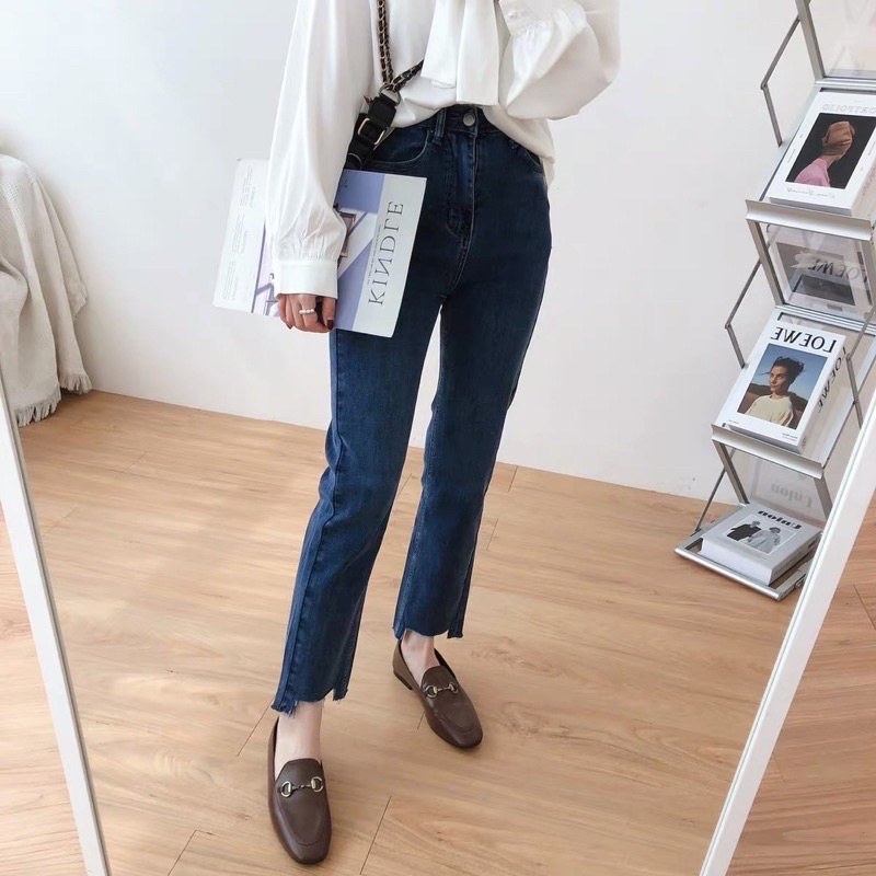 Quần jeans ống đứng cắt gấu dãn xịn style Hàn Quốc hot nhất -giá rẻ free ship